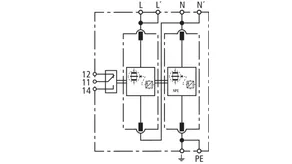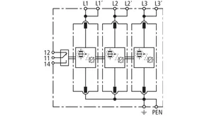 Modular combined arrester with Advanced Circuit Interruption (ACI) for TN-C systems.