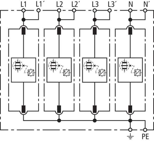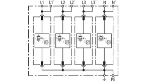 Modular combined lightning current and surge arrester for TT and TN-S systems (3+1 configuration).