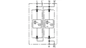 Modular combined lightning current and surge arrester for single-phase TT and TN systems (1+1 configuration).