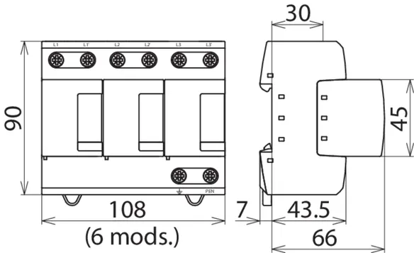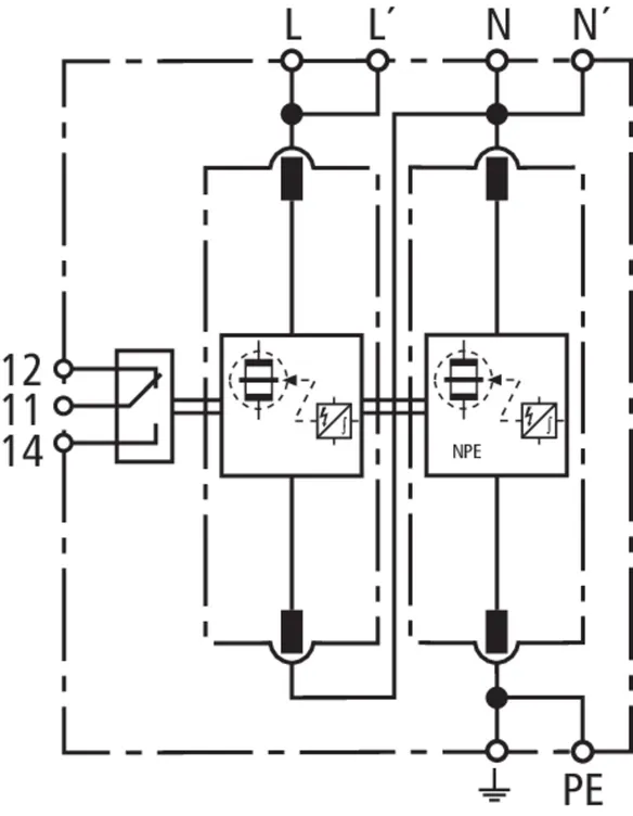 Type 1 + type 2 + type 3 arrester as per EN 61643-11