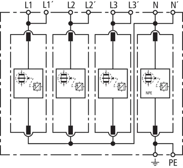 Voltage protection level [L-PE]/[N-PE] (UP ) ≤ 1.5 / ≤ 1.5 kV
