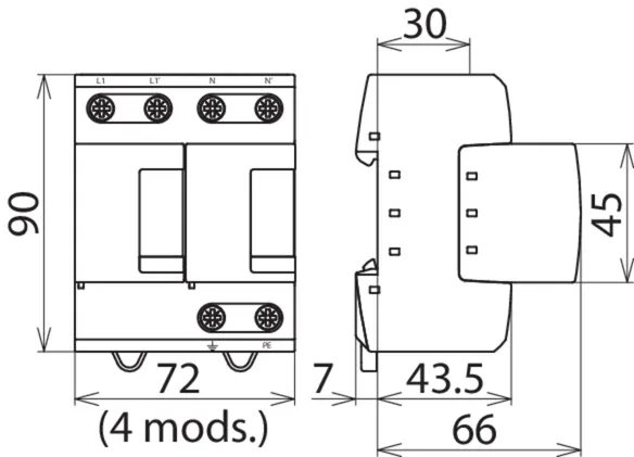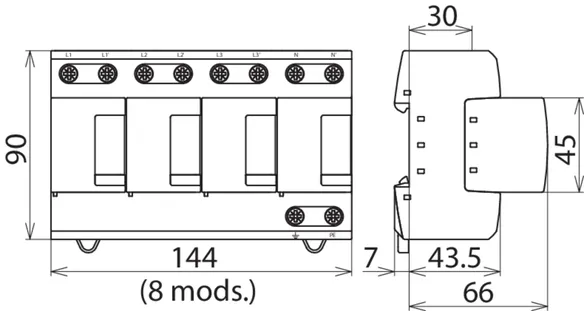 Lightning impulse current (10/350 µs) [L-N]/[N-PE] (Iimp ) 25 / 100 kA