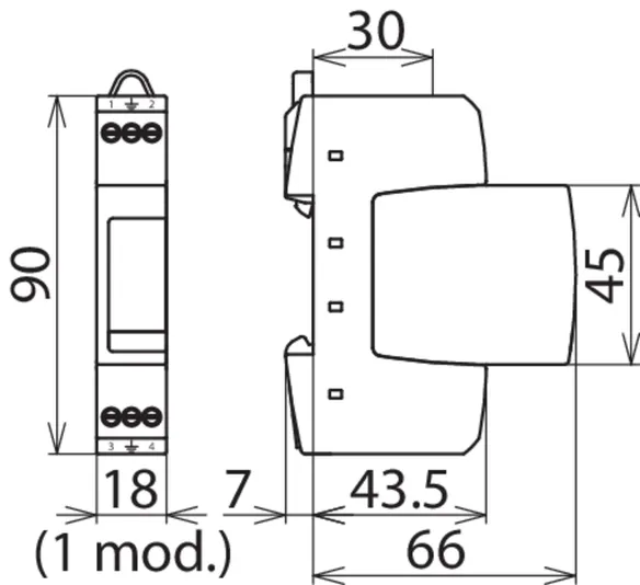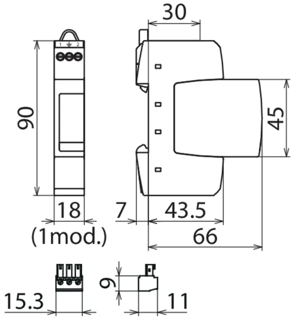 • Two-pole surge arrester consisting of a base part and a plug-in protection module