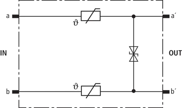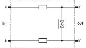 Protective plug (one pair), energy-coordinated with DRL plug-in SPD block, for use as single-stage protective device for terminal equipment. Low voltage protection level line-line for unearthed interfaces. To be mounted into EF 10 DRL. Installation recommended only in combination with DRL plug-in SPD block.