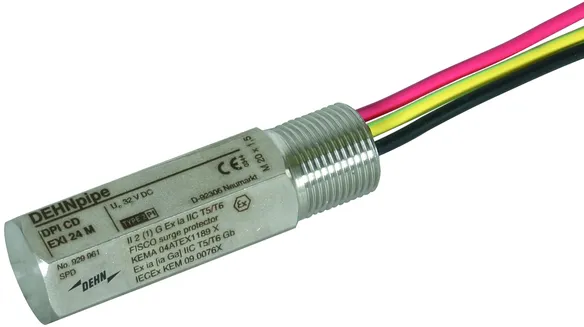 Flameproof surge arrester for the data and power side for protecting one 120 / 230 V power supply system and one 24 V data interface of field devices in potentially explosive areas (zones 1 and 2).