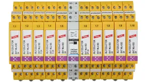 DIN rail mounted device with integrated RFID LifeCheck sensor for condition monitoring of max. 10 BLITZDUCTOR XT / XTU arresters with RFID LifeCheck technology. Visual operating state indication via three-coloured LED in conjunction with remote signalling contact (break or make contact).