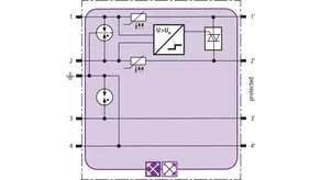 Space-saving combined lightning current and surge arrester module with actiVsense technology and RFID LifeCheck for protecting two pairs (same or different operating voltage) of balanced interfaces with galvanic isolation. Automatically detects the operating voltage of the useful signal and optimally adapts the voltage protection level to it.
