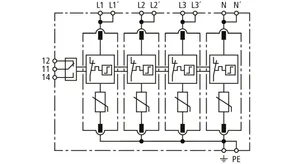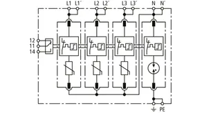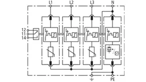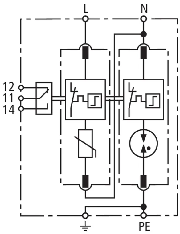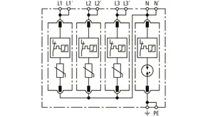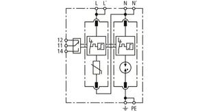 Modular surge arrester with a high total discharge capacity in the N-PE path for TT and TN systems (1+1 configuration); meets increased safety requirements by higher discharge capability; with floating remote signalling contact.
