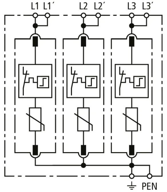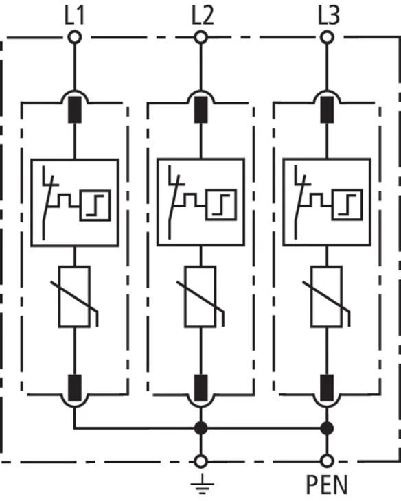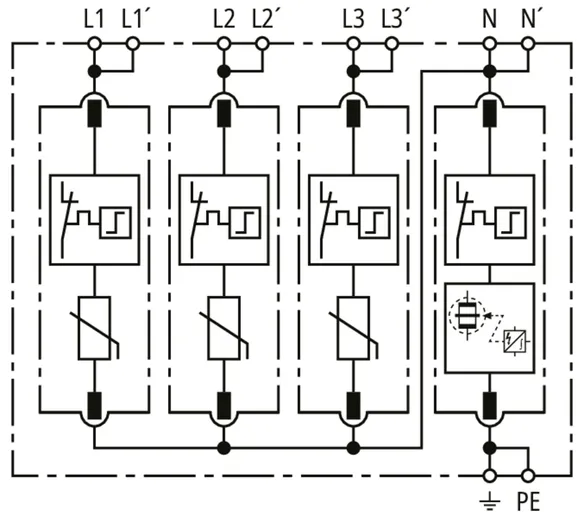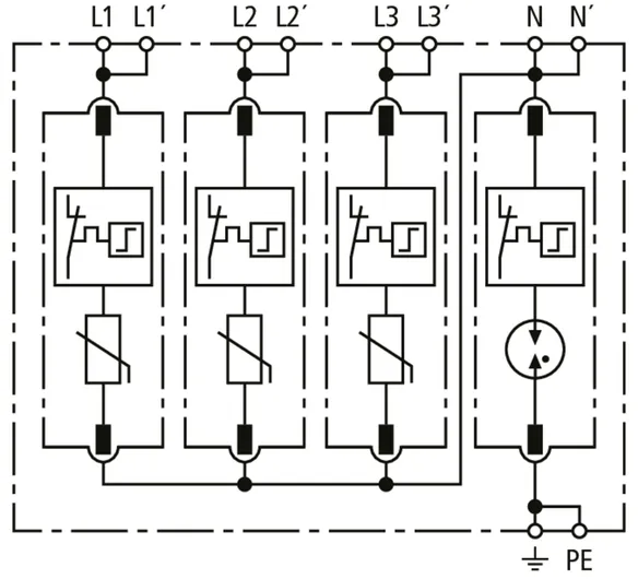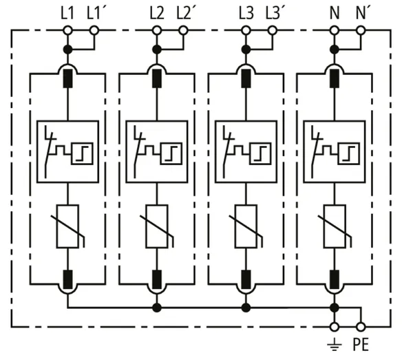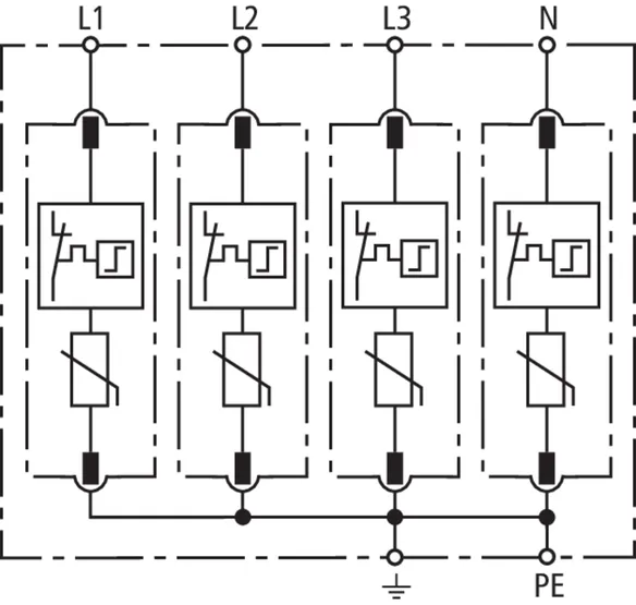 • High discharge capacity due to heavy-duty zinc oxide varistors / spark gaps