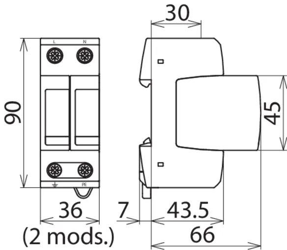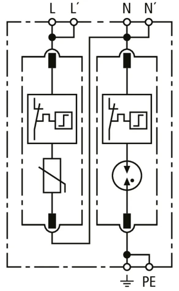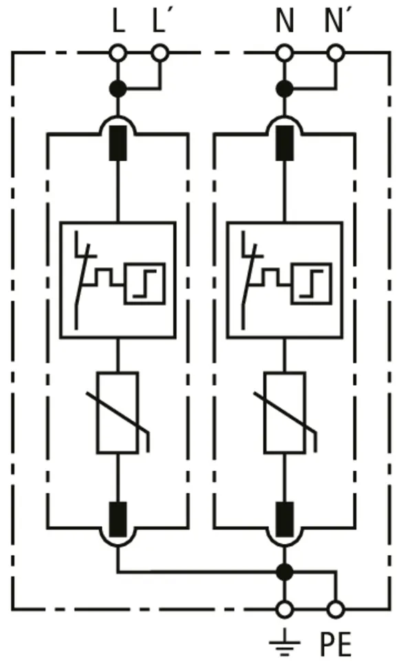 Modular surge arrester for use in single-phase TT and TN systems (1+1 configuration).