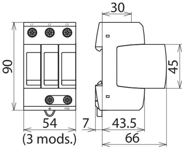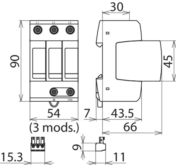 400/690 V TN-C systems, Width: 3 modules