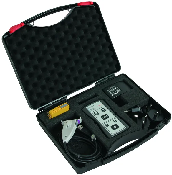 Delivery includes hand-held device, BXT LifeCheck sensor, power supply unit with country-specific adapters, USB cable, test module for reference, storage case