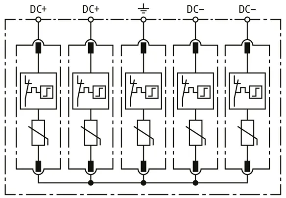 | Nominal discharge current (8/20 µs) [(DC+/DC-) --> PE] (In ) | 20 kA |