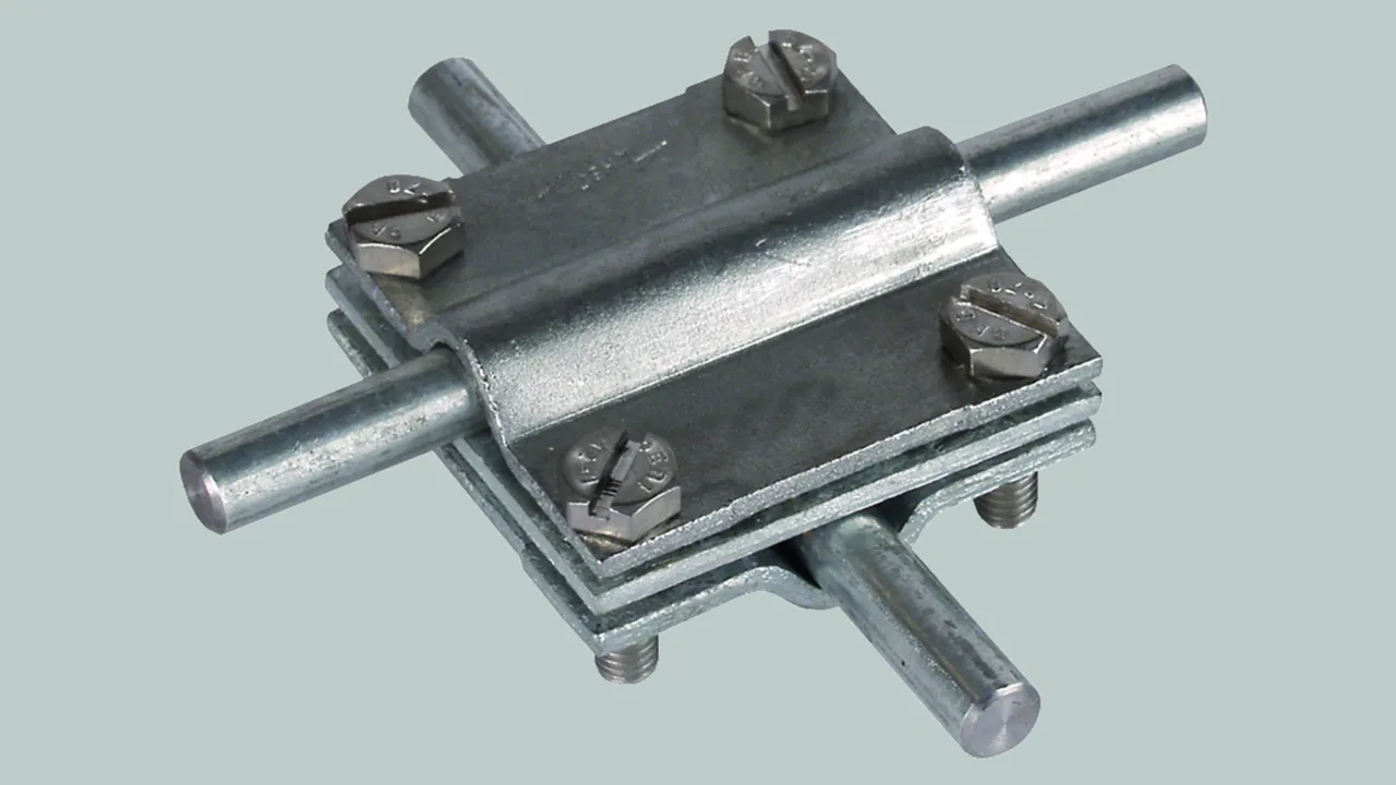 Cross units for aboveground connections with intermediate plate, HDG steel