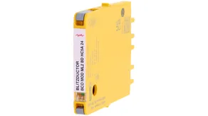Combined arrester protection module with a width of 6 mm for BLITZDUCTORconnect with status indication for protecting one pair in 24 V DC systems. Also suitable for use with an earthed negative pole. Integrated PTC resistors allow for secure resetting of the arrester after interference in the system circuit with short-circuit currents of up to 40 A.