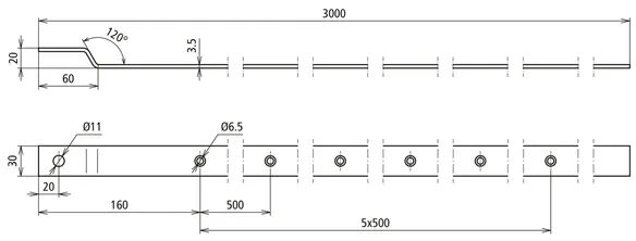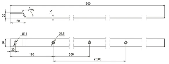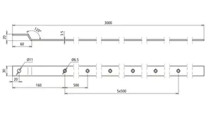 Holes at intervals of 500 mm.