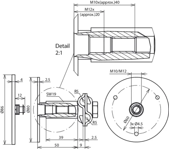 | Short-circuit current (AC 50 Hz / DC) (1 s; ≤ 300 °C) | 9.3 kA (with copper cable lug) |