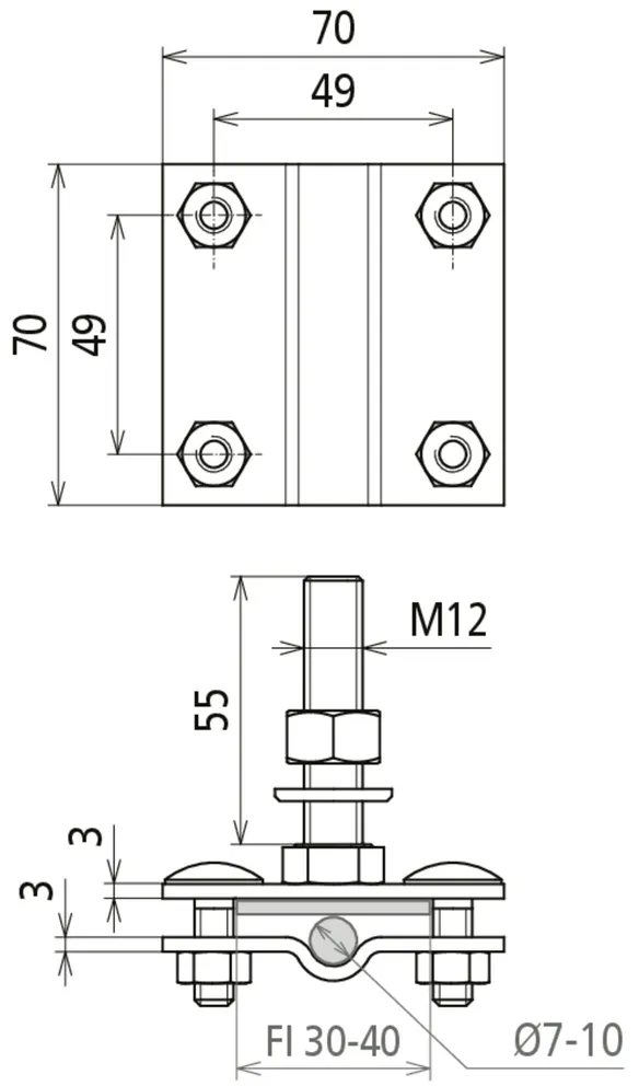 Clamping range Rd / Fl 7-10 / 30-40 mm
