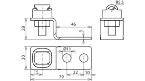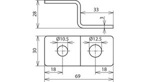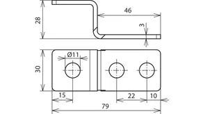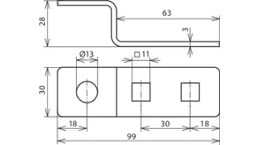 Dimensions 11x11 mm, for connecting Rd, e.g. with KS connector (Part No. 301 019), or Fl with M10 screws and nuts.