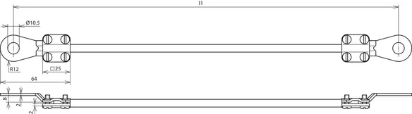Earthing cable with cable lug 2x closed, 2.05 m long