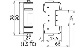 for DC applications, width of 6 DIN modules