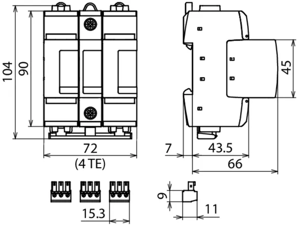 for DC applications, width of 4 DIN modules