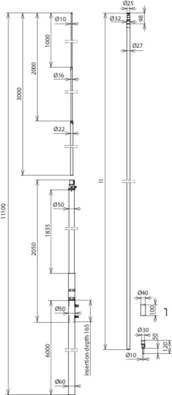 With 1x HVI power Conductor inside the supporting tube. Conductor length has be stated when ordering (steps of 0.5 m).