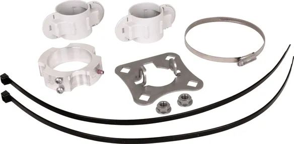 Fixing kit for attaching the HVI light plus Conductor to the HVI light plus supporting tubes, Ø40 mm, consisting of connection plate and fixing ring with stainless steel clamp for the sealing end (including four plastic holder halves and two cable ties).
