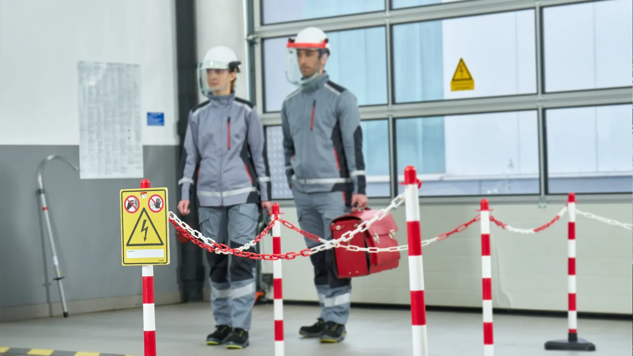 For sealing off the workplace (6 posts, 10‑m chain, 10 links, 10 hooks).