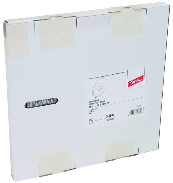 Holder with clamping part for tensioning strap fixing with grip head (Part No. 540 930) and endless tensioning strap (Part No. 540 931, dimension 14 x 0.3 mm).