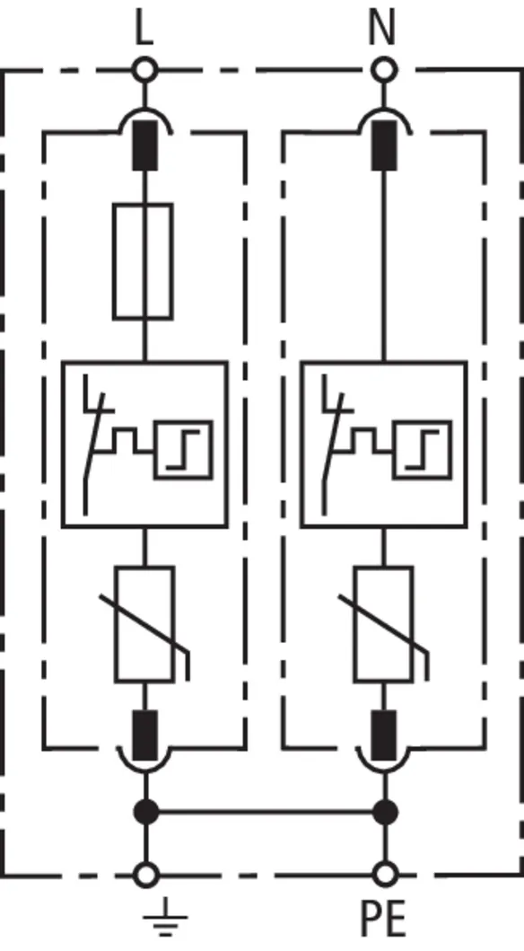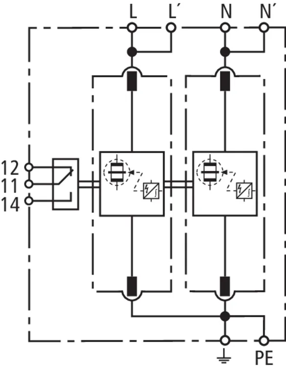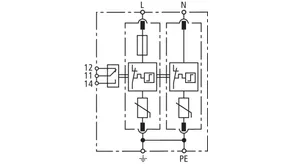 | Nominal discharge current (8/20 µs) [L-N]/[N-PE] (In ) | 12.5 / 25 kA |
