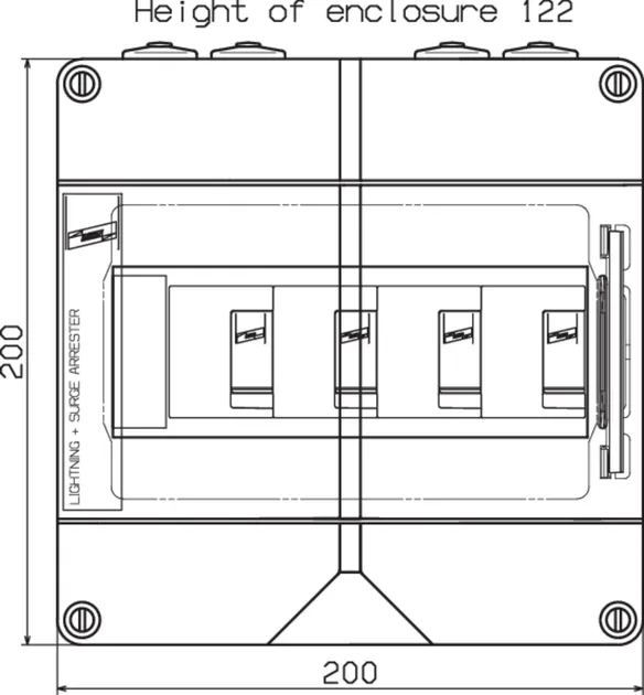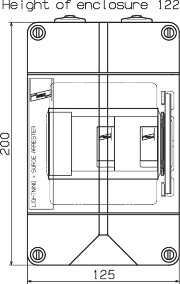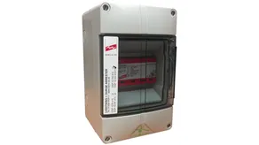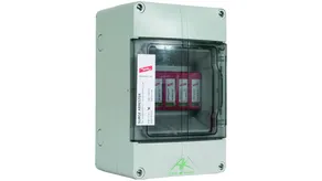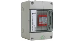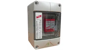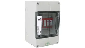 Mains connection box kit for single-phase 240 V TN systems consisting of an IP 65 enclosure equipped with DEHNguard modular surge arrester (Part No. 952 200) or type ... PA ... equipped with surge arrester (Part No. 952 205) with integrated remote signalling contact for monitoring device.