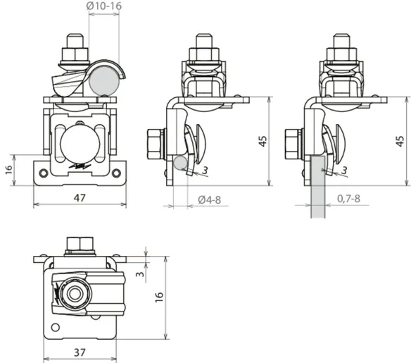 Aluminium bell mouth cable lug as per 3 EBS 15.03.22-1, available in versions M10 / M12 for railway earthing cables.