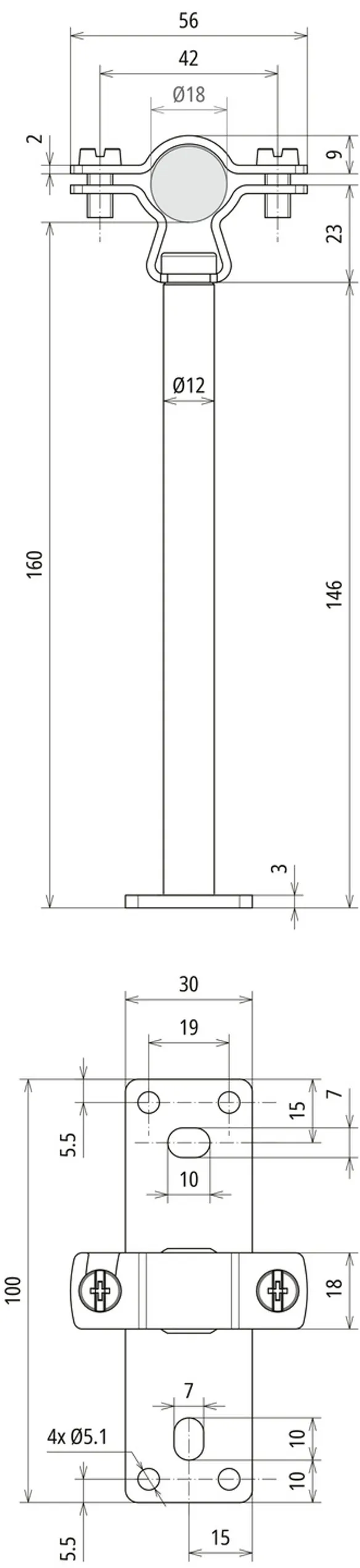 For fixing to pipes (e.g. with pipe clamp [part no. 106 323]) in Ex zones 1 and 21.