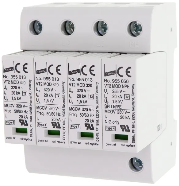| Lightning impulse current (10/350 µs) [N-PE] (Iimp ) | 12 kA |