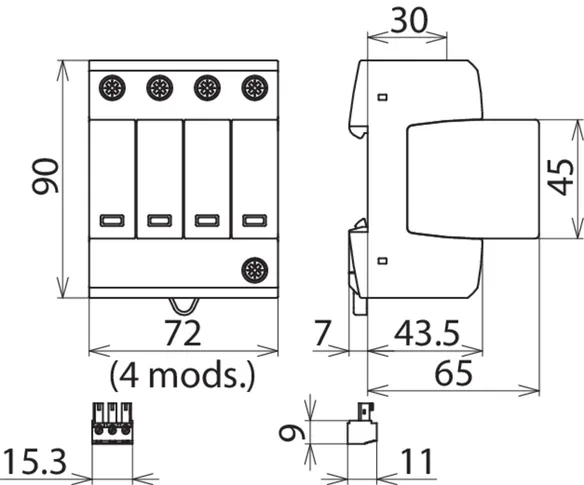 | SPD according to EN 61643-11 / IEC 61643-11 | type 2 / class II |