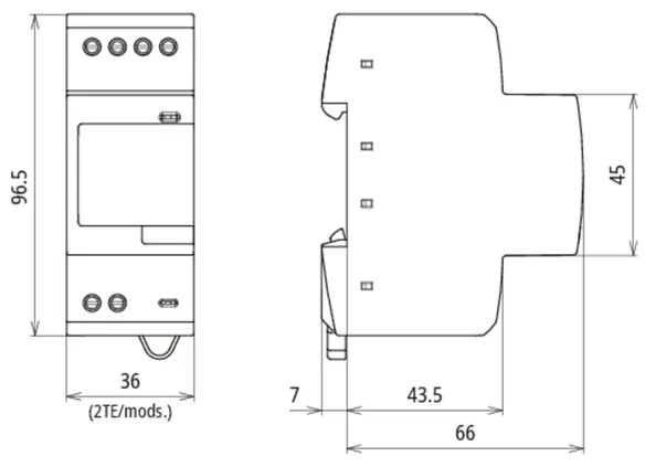 DIN rail mounted device according to DIN 43880, 7 modules