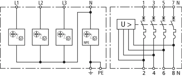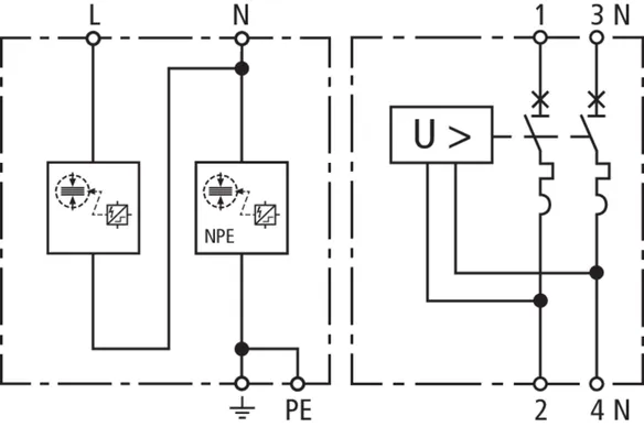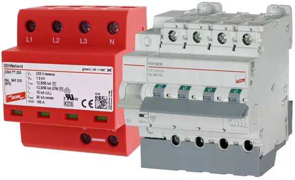 | DPS según EN 61643-11 / ... IEC 61643-11 | Tipo 1 + Tipo 2 / Clase I + Clase II |