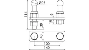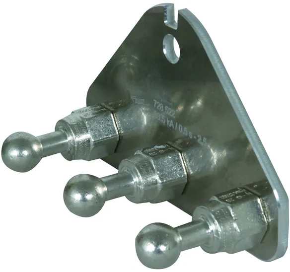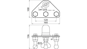 - Versión para puntos esféricos de anclaje Ø20 mm, Ø25 mm o pernos con ranuras anulares Ø16 mm