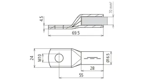| Conexión de terminal de cable | 1 conductor flexible / rígido de 16-95 mm² |