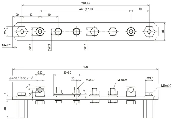 | Dimensions (l x l x p1) | 320 x 40 x 6 mm |
