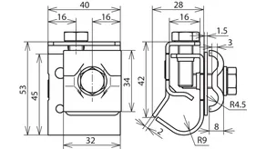 Version bimétallique pour gouttières Cu avec attache double (St/tZn) et plaquette intermédiaire (Cu/Al)