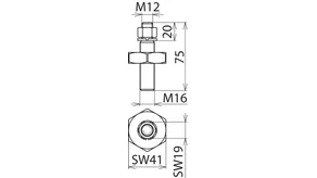 - Pièces de raccordement avec boulon fileté M12 ou M16