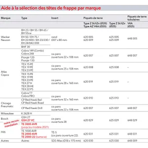 | Type | marteaux à percussion, types SDS-max |