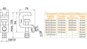 | Pour point fixe à tête sphérique Ø | 20 / 25 mm |