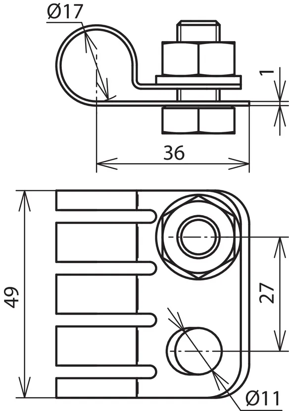 | Raccordement | boulon Ø10 mm, L 50 mm |