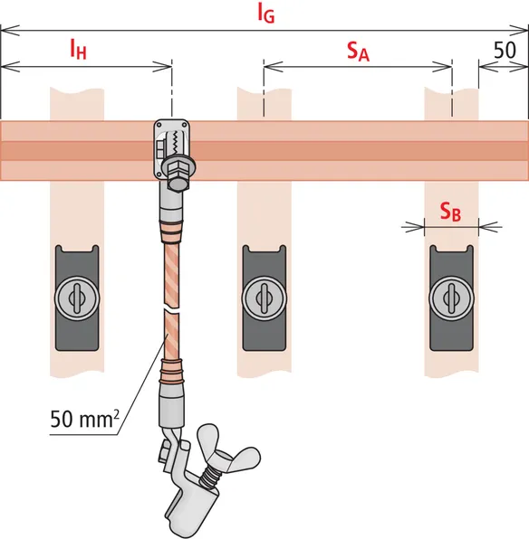 - Il est possible de choisir en ligne d’autres longueurs de câble de mise à la terre et de rails via le système de configuration EuK