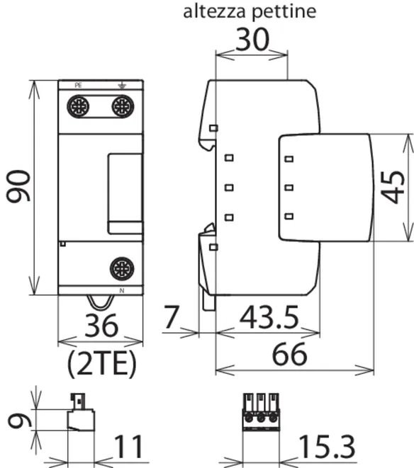 - Capacità di scarica 100 kA (10/350 µs)