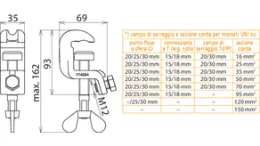 | Per sezione corda Cu | 16 ... 95 mm2 |