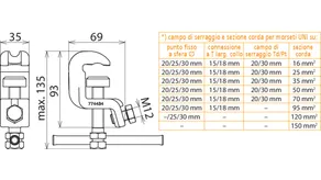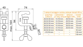| *) vedi tabella campo di serraggio e sezione corda per pinze universali | |